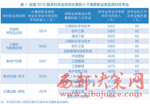 近日,麥可思研究院發(fā)布了一份有關(guān)中國(guó)大學(xué)畢業(yè)生收入情況的調(diào)查報(bào)告。數(shù)據(jù)顯示,在2016屆本科畢業(yè)生從事的職業(yè)類別中,“互聯(lián)網(wǎng)開發(fā)及應(yīng)用”領(lǐng)跑職業(yè)高薪榜,畢業(yè)半年后平均月薪達(dá)5679元,此外,“房地產(chǎn)經(jīng)營(yíng)”也在高薪榜前列。