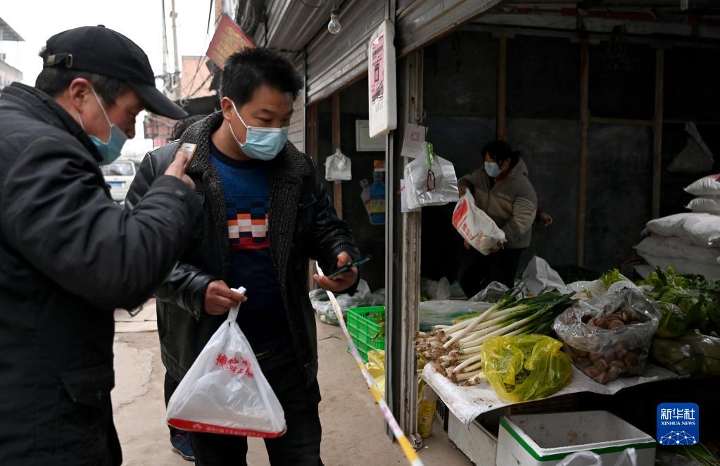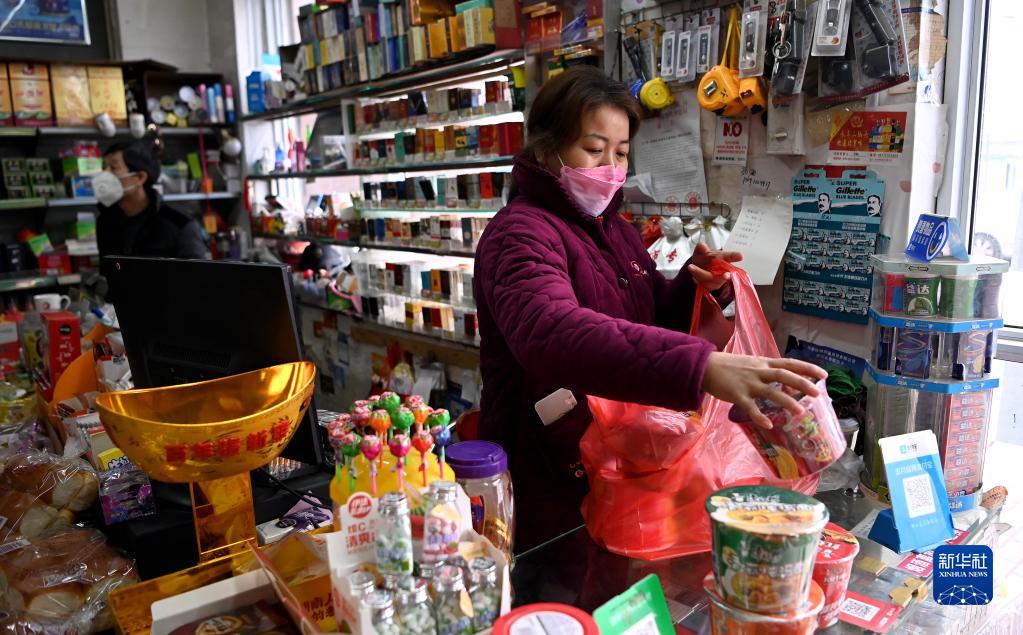 1月7日,西安市未央?yún)^(qū)西唐寨村村民在超市購(gòu)買(mǎi)商品。