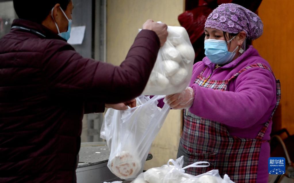 1月7日,西安市未央?yún)^(qū)西唐寨村村民在村里的饅頭店買(mǎi)饅頭。
