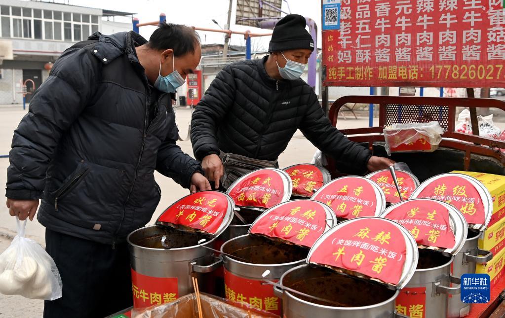 1月7日,西安市未央?yún)^(qū)西唐寨村村民在購(gòu)買(mǎi)食品。