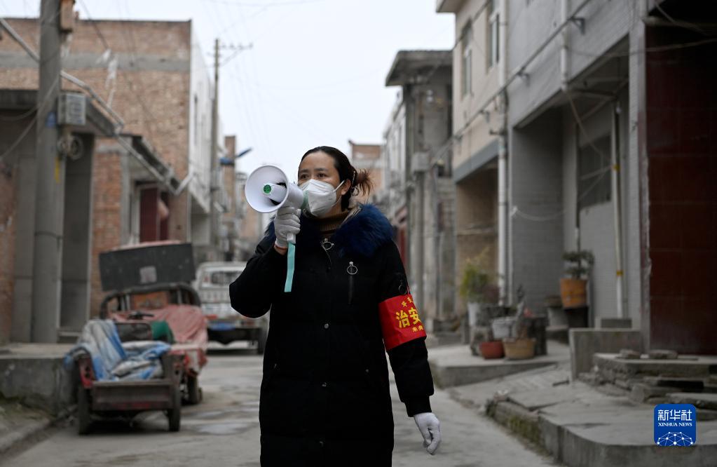 1月7日,西安市未央?yún)^(qū)西唐寨村志愿者在村里巡邏,對(duì)未居家的群眾進(jìn)行勸返。